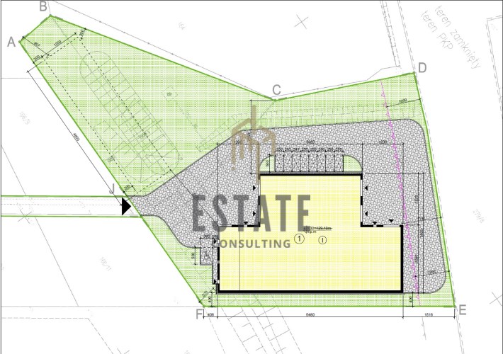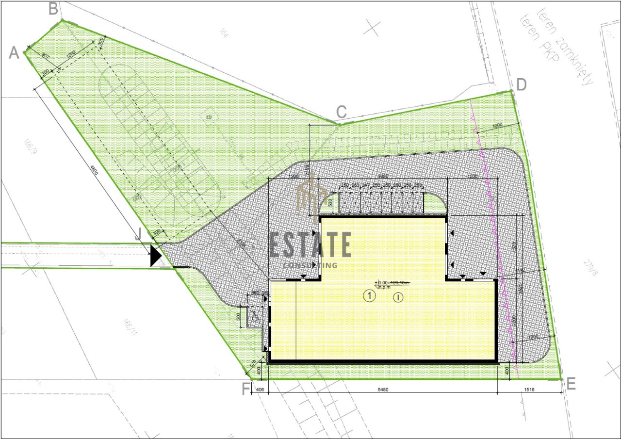 Obecnie opracowywany jest projekt zabudowy działki z przeznaczeniem na funkcję usługową, który przewiduje wzniesienie budynku biurowo-magazynowego o powierzchni użytkowej około 1.500 m2.