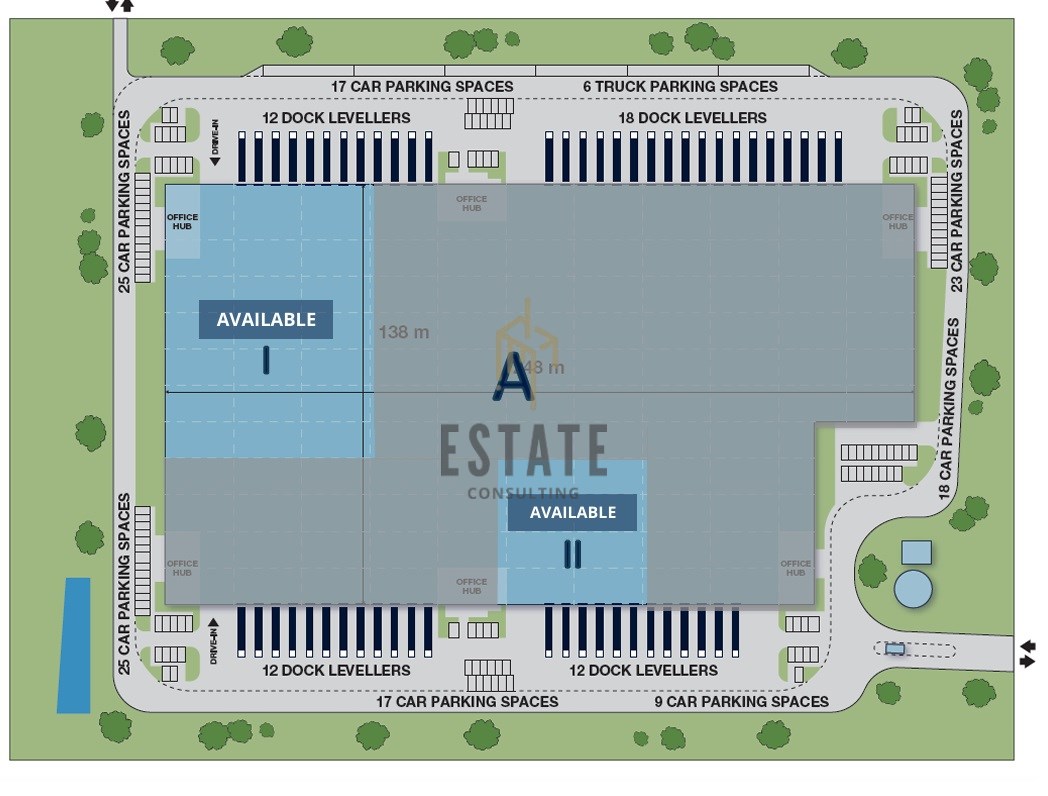 Minimalna powierzchnia najmu wynosi 2.200 m2, maksymalna - 7.200 m2.