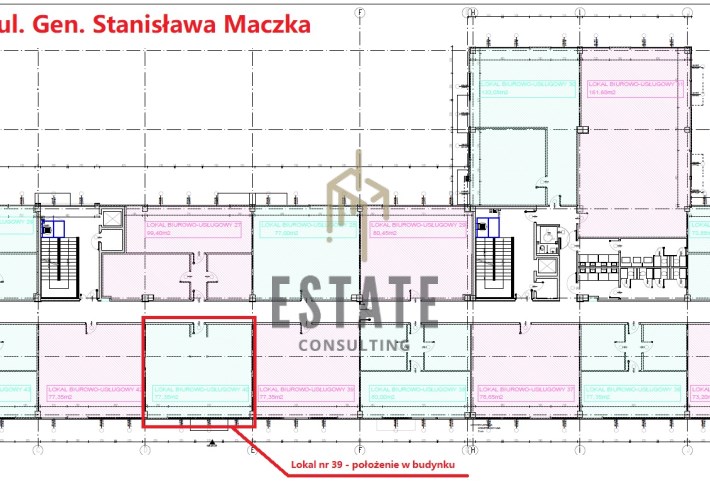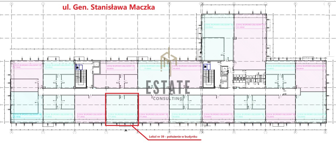 Oferujemy do sprzedaży lokal w stanie deweloperskim o powierzchni 77 m2 położony na drugim piętrze w reprezentacyjnym trzykondygnacyjnym budynku usługowym z ogromnym parkingiem.