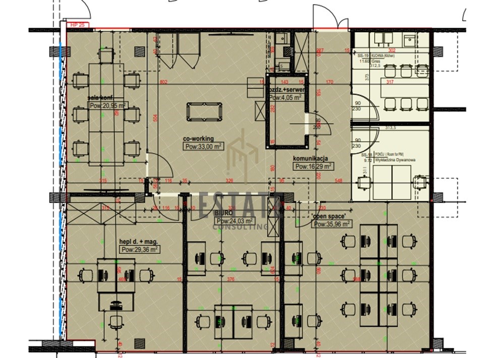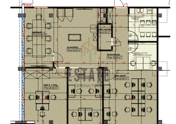 - opłata eksploatacyjna: 26,38 zł/m2 netto
