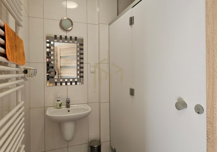 Do wynajęcia niezależny, parterowy budynek użytkowy z własnym ogrodzonym parkingiem. Powierzchnia użytkowa 175 m2 obecnie w większej części stanowi część otwartą, w której wkomponowano aneks kuchenny. W pozostałej części wydzielono 2 toalety (jedna dostosowana do potrzeb osób z niepełnosprawnościami), szatnię oraz 2 pomieszczenia gospodarcze.