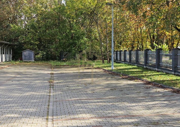 Użytkowy obiekt wolnostojący z ogrodzonym terenem.